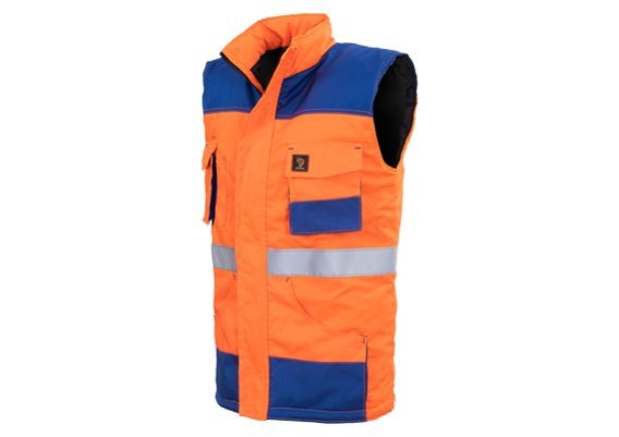 Bezrękawnik wykonany z tkaniny 65 % poliester / 35 % bawełny o gramaturze 260 g/m² ocieplina. Zasuwany na zamek błyskawiczny, osłonięty listwą na rzepy. Dwie kieszenie na klatce piersiowej w tym jedna kieszeń na smartphone i mała długa kieszonka np. na ołówki, po drugiej stronie kieszeń zapinana na rzep oraz dwie dolne kieszenie. Rygle wzmacniające, podwójne szwy zwiększające wytrzymałość oraz regulacja na guzik w pasie. Wzmocnienia typu OXFORD. Wyprodukowano w Polsce. Rozmiary: 46 - 62. Dostępne w kolorach: szary, moro, niebieski, safari, żółty HV oraz pomarańczowy HV (dużej widoczności z dodatkowymi taśmami odblaskowymi). Możliwość skompletowania odzieży roboczej PROMAN.