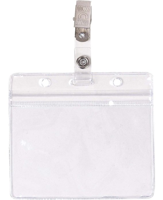 Uniwersalna karta identyfikacyjna z możliwością przypięcia do ubrania za pomocą klipsa.