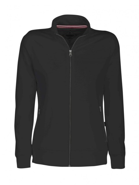 Bluza zapinana na zamek. Kontrastowa taśma przy stójce, wzdłuż zamka i na dole. Z przodu dwie kieszenie. Dodatek elastanu w ściągaczach na dole i przy mankietach.