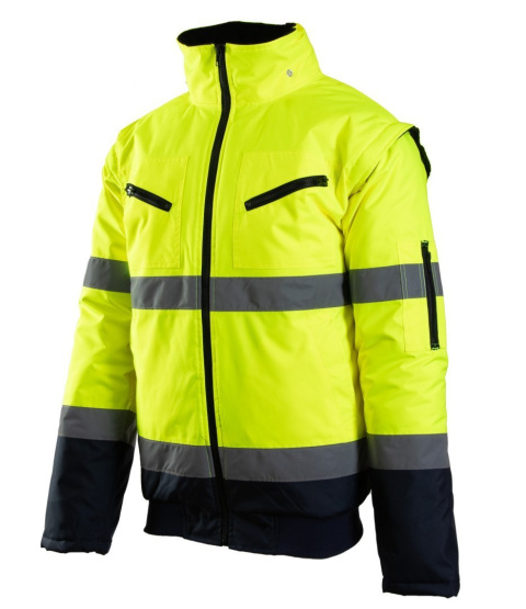 • KURTKA ROBOCZA OCIEPLANA OSTRZEGAWCZA BENEFIT HI-VI BOMBER 2W1 KAT. II KLASA 3 WSTAWKA KOLOR POLSTAR ŻÓŁTA