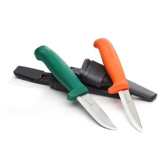 Kabura podwójna na nóż GK do prac zgrubnych i nóż rzemieślniczy HVK. Nóż do prac zgrubnych to mocny, odporny na stępienie nóż, odpowiedni do podważania, łamania i ciosania. Nóż rzemieślniczy został zaprojektowany i dostosowany do potrzeb rzemieślników. Zestaw do rozmaitych prac na placu budowy.