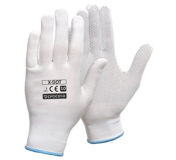 Rękawice X-DOT wykonane z poliestru z jednostronnym mikro nakropieniem w kolorze białym. Idealne do prac manualnych. Bardzo dobre czucie trzymanego przedmiotu. Dobrze dopasowują się do kształtu dłoni. Rozciągliwe i elastyczne. Zakończone ściągaczem. Przeznaczone do prac mechanicznych. CE. Opakowanie: karton 12/300. Kolor: biały.